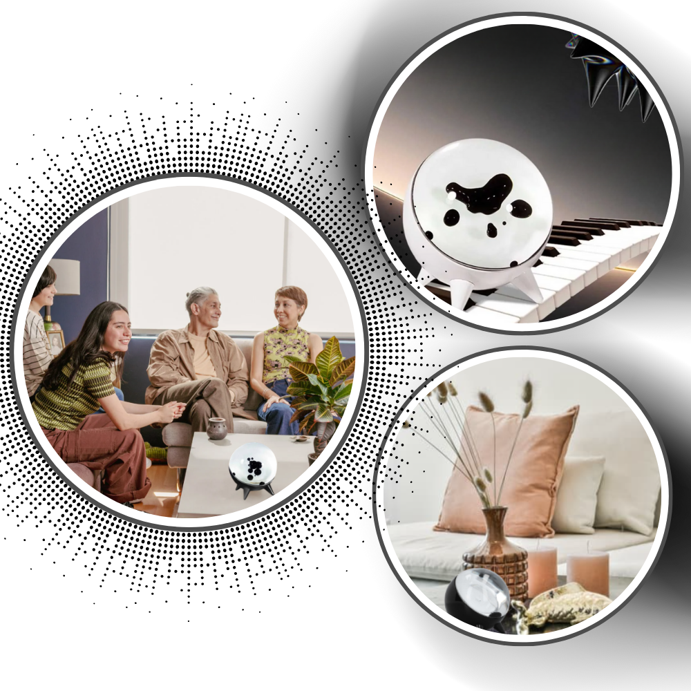 Create l'atmosfera perfetta con l'illuminazione bianca calda della lampada. La sua luce delicata esalta i movimenti dell'Altoparlante in Ferrofluido Danzante senza sovrastare l'ambiente circostante, rendendolo ideale per il relax o come sottile elemento d'arredo. Che si tratti di una serata intima o di uno spazio di lavoro creativo, la luce calda completa ogni ambiente.