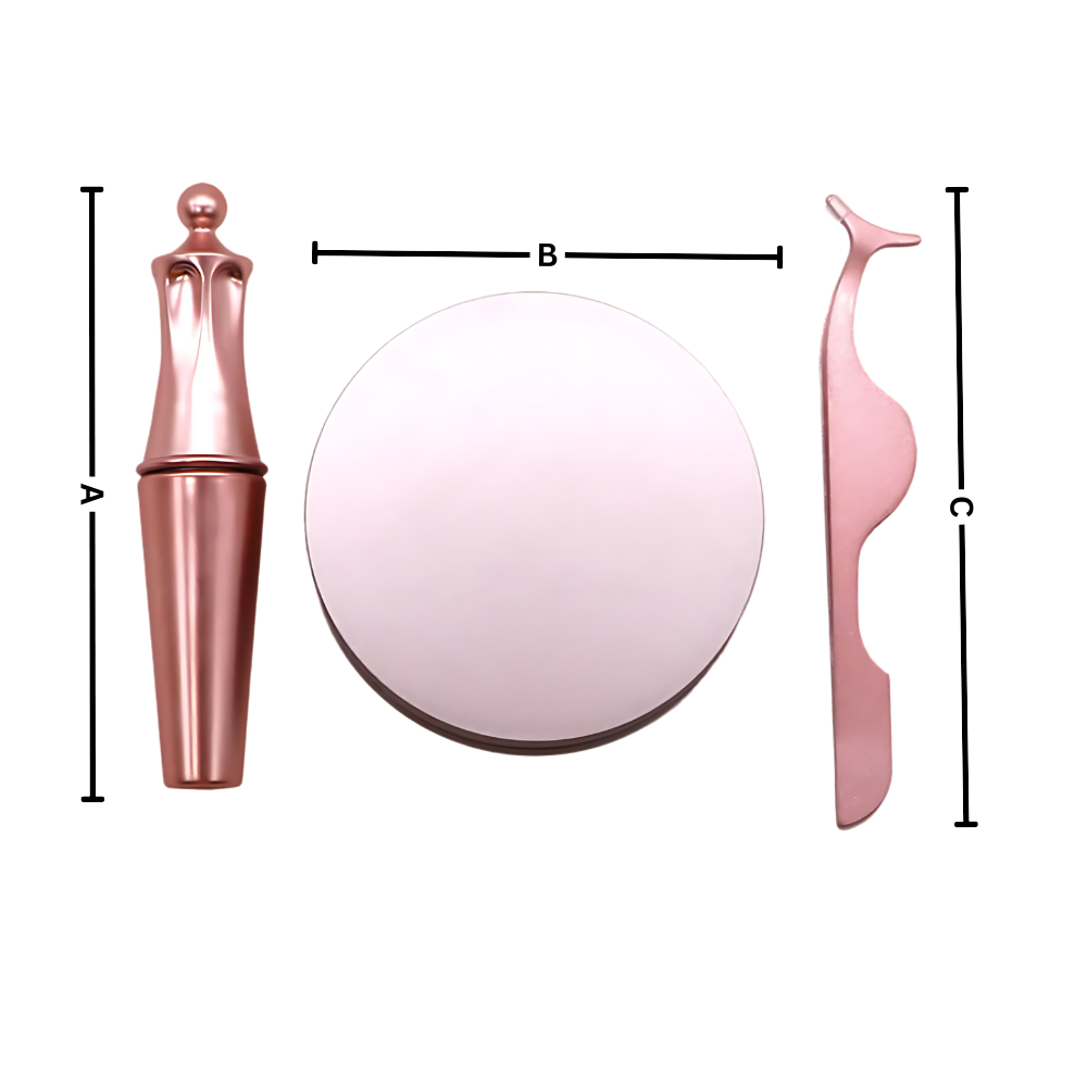 Dimensioni: Eyeliner- 100 mm Contenitore ciglia: 83 mm Pinzette: 113 mm