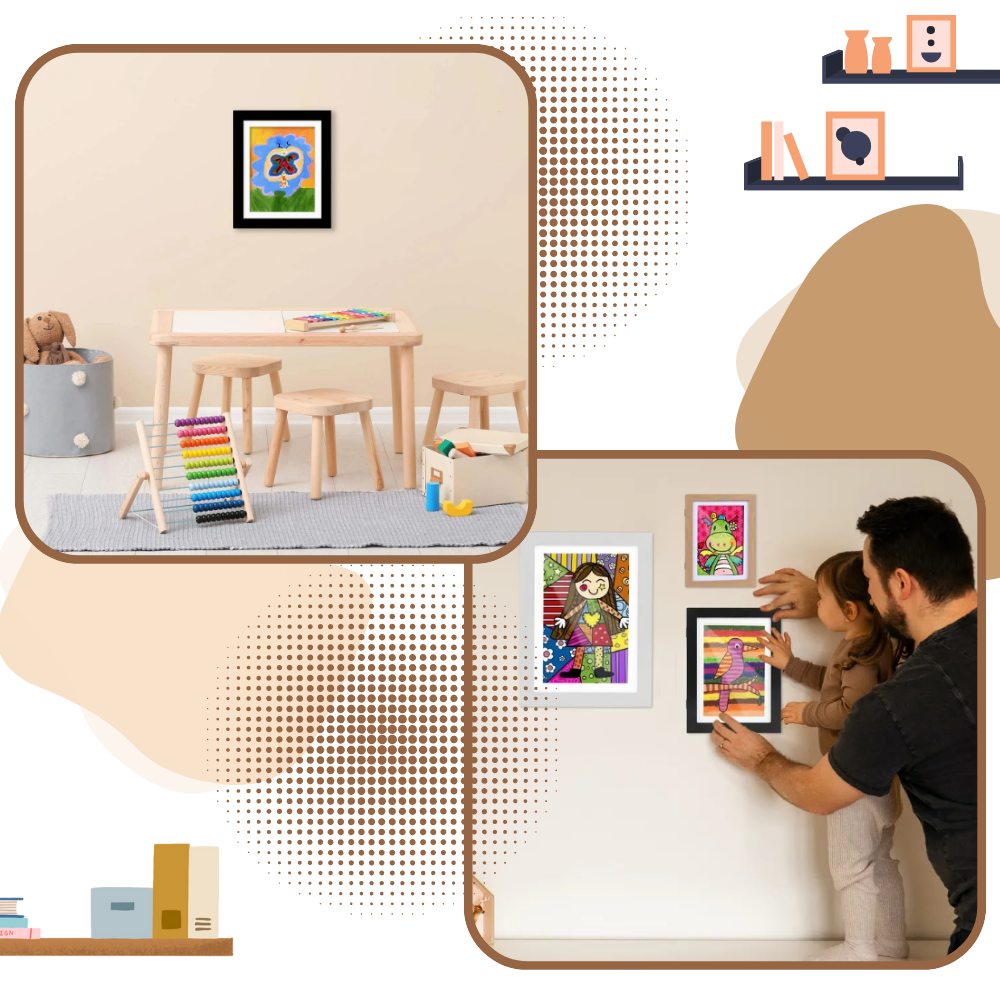 Ogni cornice Lil Davinci della collezione si distingue per la sua finitura liscia ed elegante, aggiungendo un tocco raffinato all'arredamento e valorizzando al meglio la creatività del bambino. Il design minimalista e moderno si integra armoniosamente in qualsiasi ambiente, dalle camerette colorate agli spazi più neutri e contemporanei. La finitura accurata non solo ne aumenta la durabilità, ma la rende anche facile da pulire, proteggendo l’opera d’arte da polvere e macchie. Disponibile in nero opaco, bianco classico o legno naturale, la cornice mette in risalto l’opera, arricchendo al contempo lo stile della casa con un’eleganza discreta.