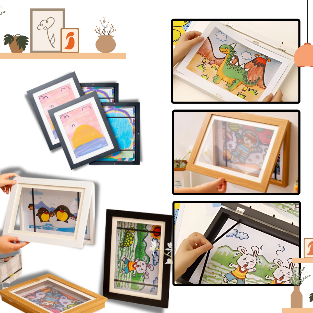Grazie alla funzione di scambio facile dell'opera d'arte, rinnovare il display è semplice quanto creare un nuovo capolavoro. Le cornici sono progettate per la massima praticità, permettendo di aprirle rapidamente e sostituire l'opera d'arte senza difficoltà. Questo le rende perfette per mettere in risalto la creatività in continua evoluzione dei bambini, che costantemente producono nuovi disegni, dipinti o progetti. Sia che si tratti di un'opera a tema festivo o dell'ultimo progetto scolastico, il meccanismo di apertura intuitivo consente di cambiare le opere in pochi minuti, mantenendo l'esposizione sempre fresca e allineata con l'ispirazione del momento.