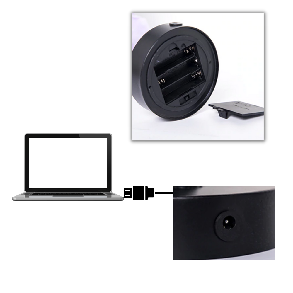 Non hai le batterie a portata di mano? Non preoccuparti, grazie al suo design speciale, questa lampada può essere alimentata anche tramite cavo USB. Basta collegarla al tuo laptop o power bank ed è pronta per l'uso. Non è conveniente?