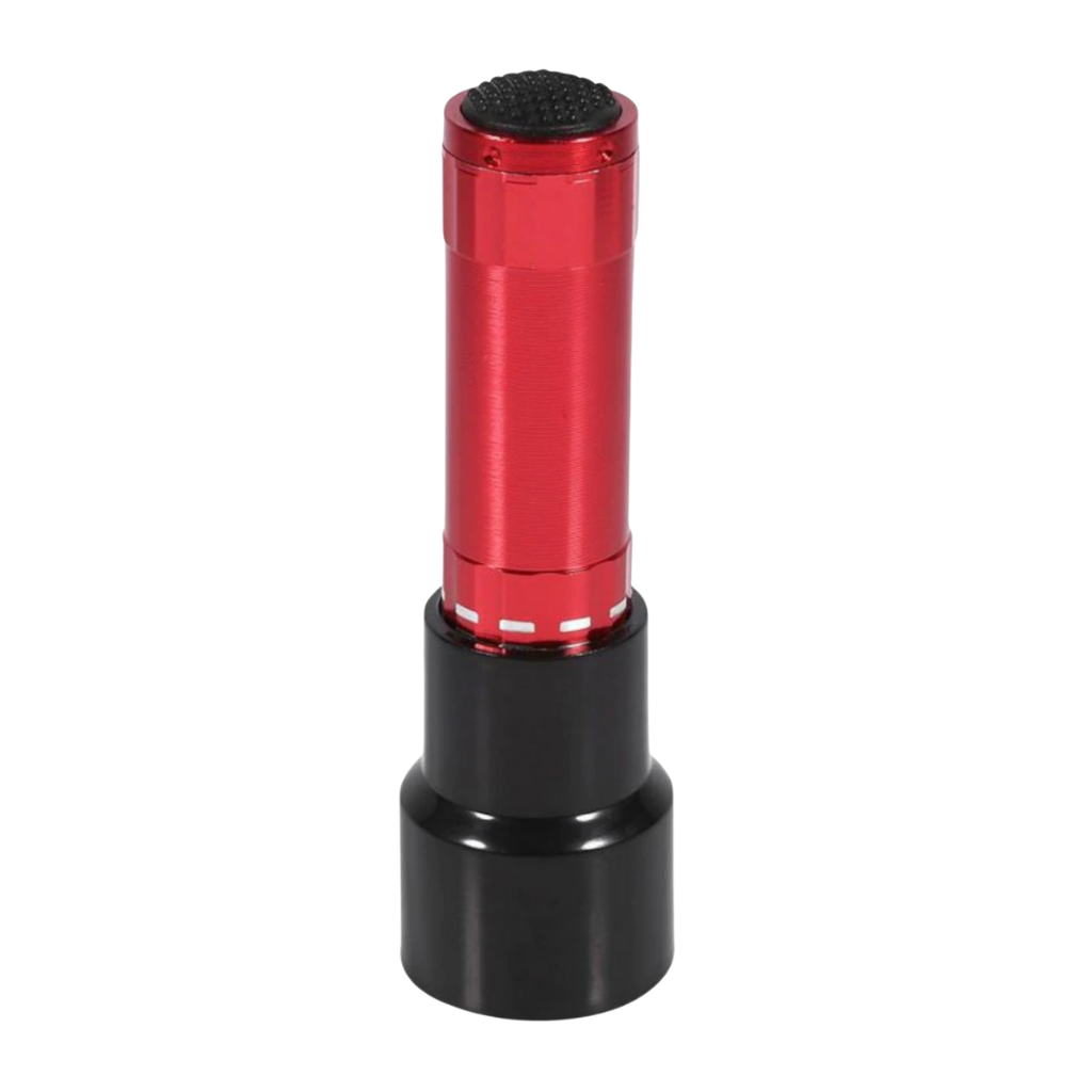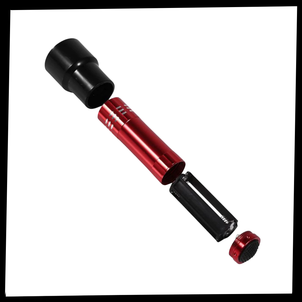 La torcia a candela certificata CE è fatta di alluminio resistente e plastica. È disponibile in diversi colori come nero, rosso, blu e argento. Misura 12 cm, è leggera e facile da maneggiare. Il diametro dell'anello di gomma è di 30 mm, e la torcia è larga 36 mm. Il dispositivo è alimentato da 3 batterie AAA (non incluse) ed è semplice da montare e smontare.
