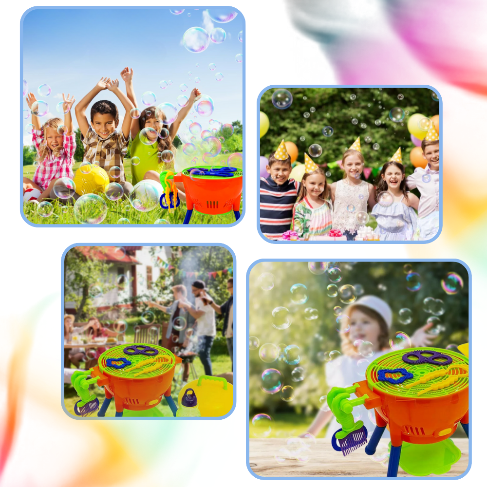 La Bubble BBQ Machine è compatta, leggera e facile da trasportare, ed è perfetta per giocare all'aperto ovunque. Che si tratti di una riunione in cortile, di una giornata al parco o di una festa di compleanno, la Bubble BBQ Machine può essere portata con sé senza sforzo. La sua struttura durevole e sicura per i bambini assicura che resista all'uso all'aperto, in modo che i bambini possano portare la felicità delle bolle ovunque vadano.