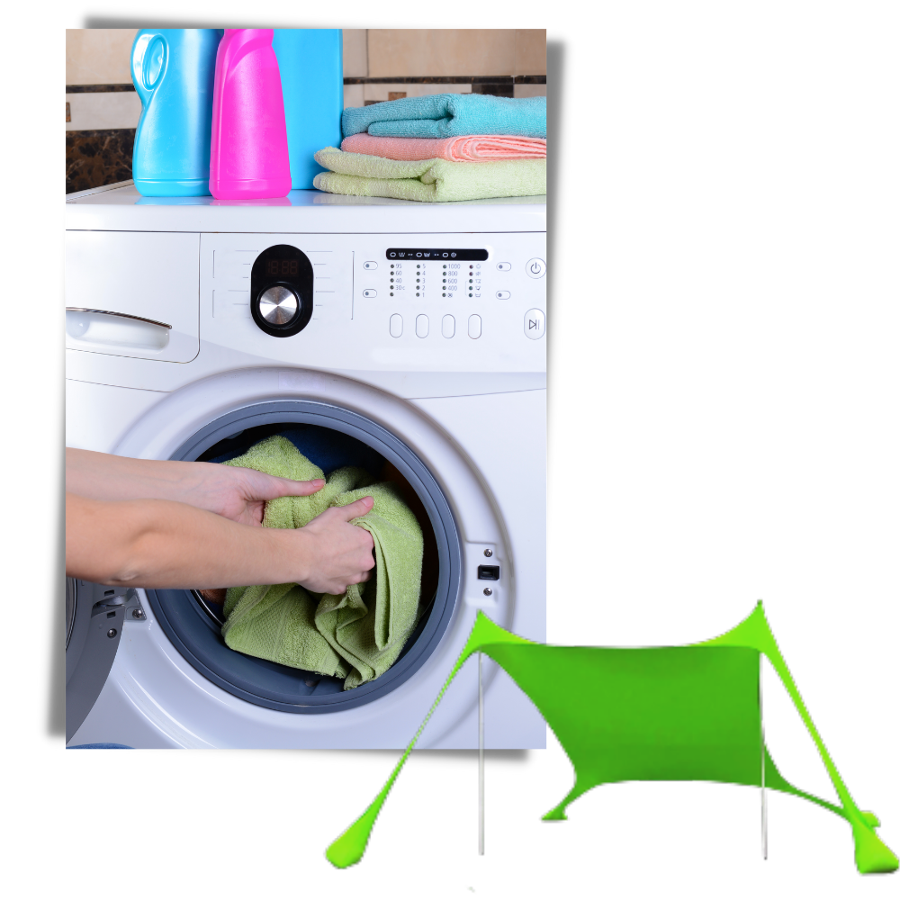 Con questa tenda ombreggiante da spiaggia di grande capacità non dovrete però affrontare problemi di pulizia grazie al fatto che è compatibile con la lavatrice. Ciò significa che potrete semplicemente gettarla in lavatrice e lavarla quando si sporca.
