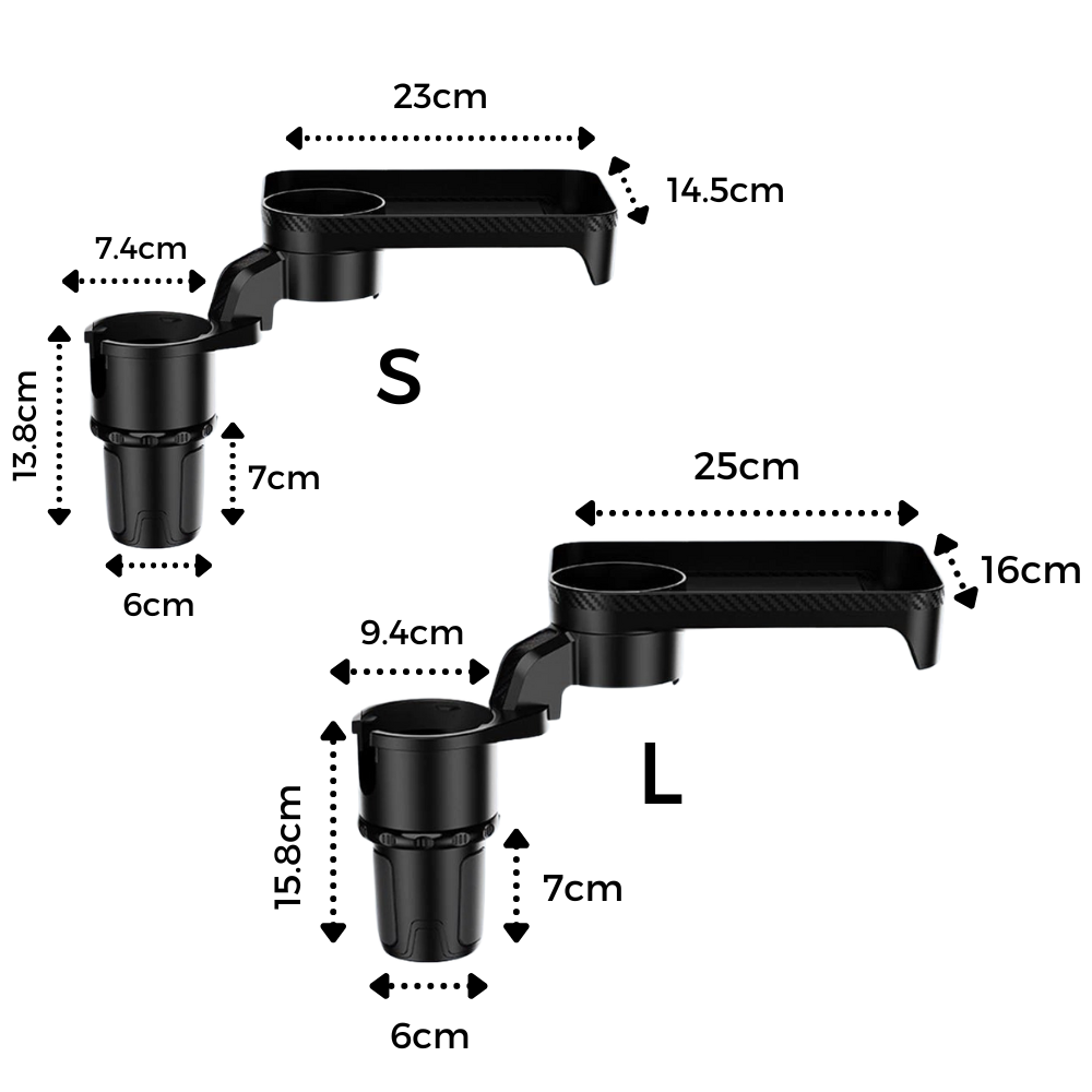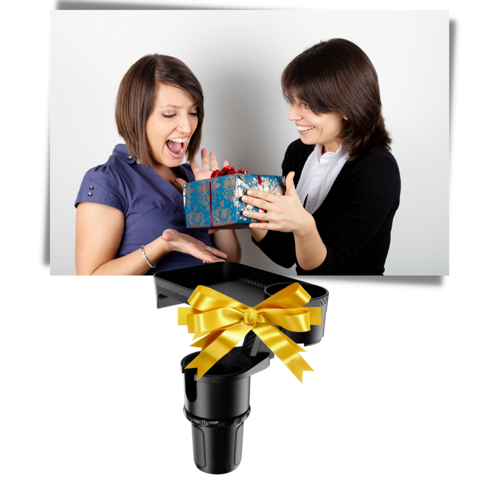 Questo portabicchieri per auto si differenzia grazie alla sua struttura multifunzionale. Infatti, questo portabicchieri ha anche un vassoio per alimenti incorporato. È persino girevole! Potrete quindi utilizzarlo per fissare contemporaneamente acqua/bevande e cibo. Il vassoio può essere utilizzato anche per riporre oggetti di ogni tipo, come occhiali da sole, telefono e altre cose. Che comodità!