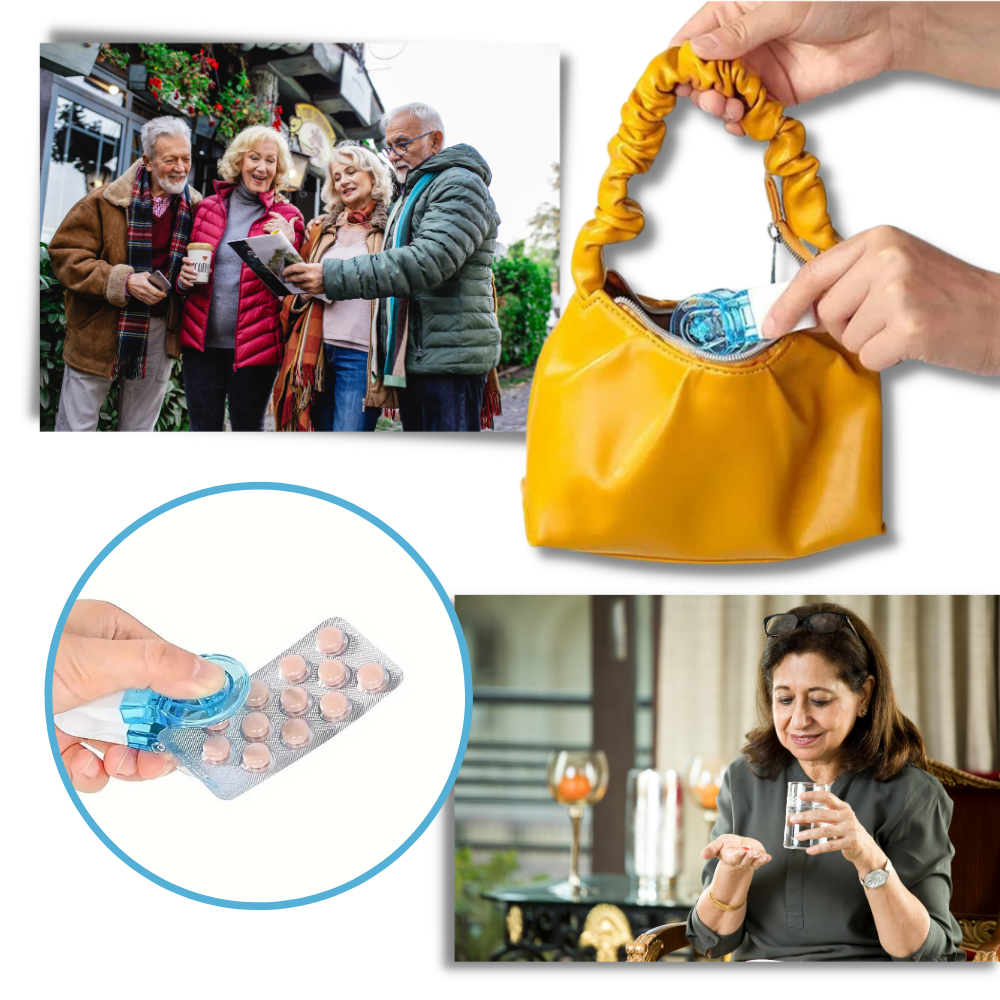 Nel mondo frenetico in cui viviamo, la gestione dei farmaci dovrebbe essere il più possibile semplice e senza stress. Il nostro portapillole portatile non solo semplifica il processo di prelievo delle pillole dai blister, ma funge anche da dispensatore di pillole compatto e da contenitore.