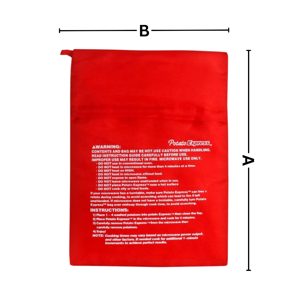 Il nostro sacchetto per patate per microonde vi apre un mondo di possibilità culinarie grazie alla sua versatilità. Sebbene sia perfetto per cuocere le patate alla perfezione, la sua utilità si estende a una varietà di altri alimenti. Utilizzatelo per cuocere a vapore mais, patate dolci o anche per scaldare pane e tortillas. Il design adattabile del sacchetto può ospitare una varietà di cibi, rendendolo uno strumento prezioso sia per sperimentare nuove ricette che per semplificare la preparazione dei vostri piatti preferiti. La sua versatilità lo distingue come un accessorio multifunzionale che va oltre il semplice gadget da cucina monouso, arricchendo così la vostra esperienza culinaria.