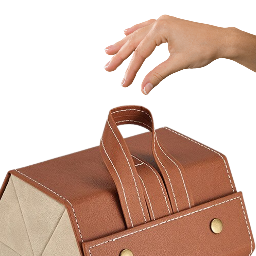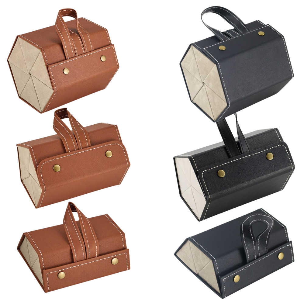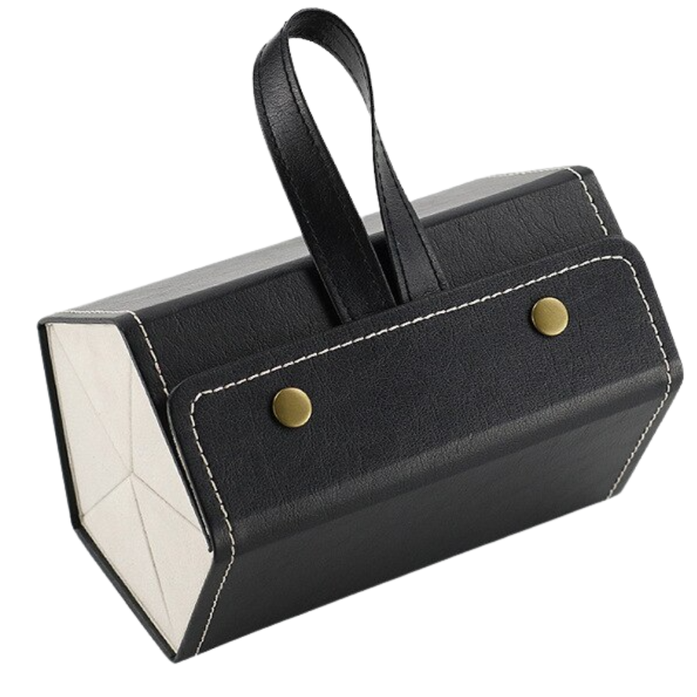 Ora potreste pensare: "Dal momento che questa custodia per occhiali è in grado di ospitare più occhiali contemporaneamente, quanto è facile da portare in giro?". La risposta? Molto facile! Questo dispositivo multi-sezione per la conservazione degli occhiali ha una eccellente struttura portatile che vi garantisce di poterlo portare sempre con voi, ovunque andiate, senza stress.