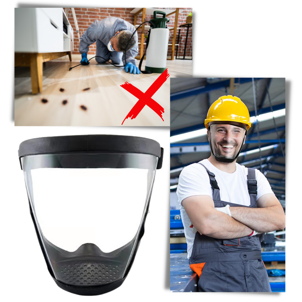 Questa copertura protettiva trasparente per il viso offre un'eccellente protezione che ti assicura che sarai in grado di lavorare e muoverti ovunque tu voglia senza preoccuparti che qualcosa ti entri negli occhi o che tu inali sostanze chimiche pericolose.