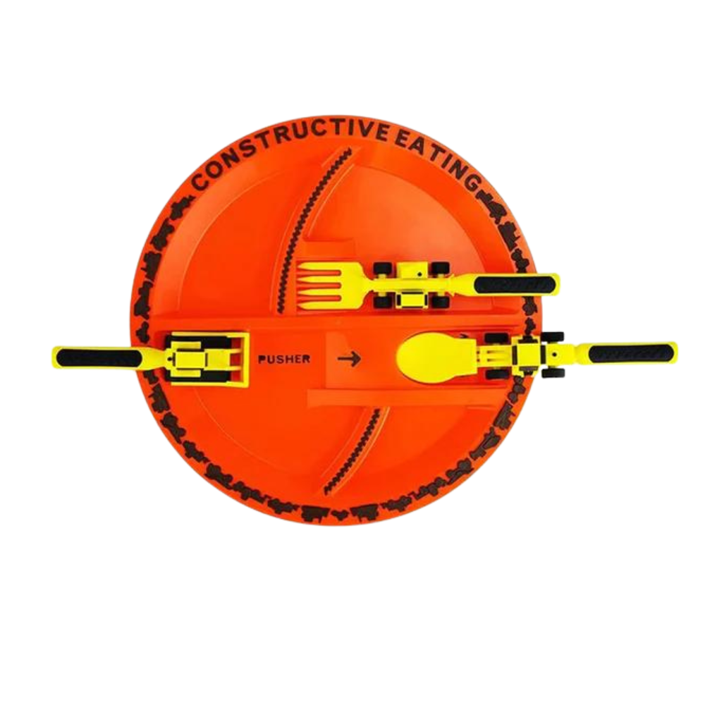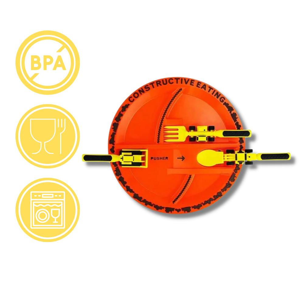 Questo set di utensili da cucina è molto più di un semplice utensile: è una porta d'accesso all'autonomia e alla creatività del bambino. Ogni pezzo del set è stato meticolosamente modellato sulla base di attrezzi da costruzione reali, aggiungendo un elemento di realismo ed eccitazione al momento del pasto. Senza dimenticare il divertente piatto con scomparti che mostra al bambino il posto assegnato a ogni posata (forchetta, cucchiaio e spingi-cibo).