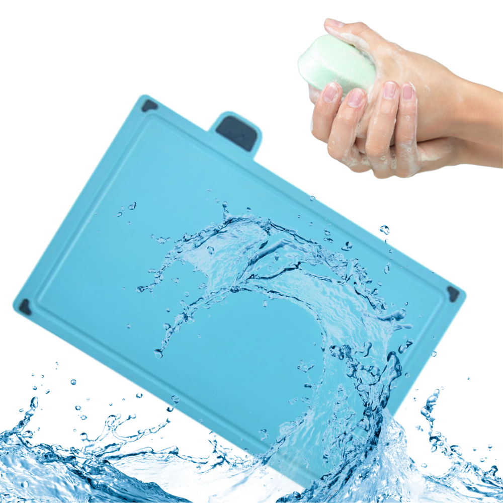 Questo particolare tagliere, tuttavia, ha un design con base antiscivolo che aiuta a garantire che rimanga in posizione mentre lo si utilizza. Non dovrete quindi preoccuparvi che il tagliere scivoli e che vi facciate male mentre lo utilizzate.